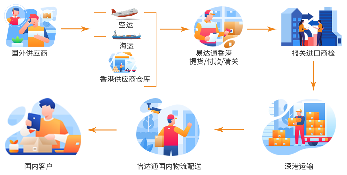 客戶和怡達(dá)通簽訂委托進(jìn)口協(xié)議,我司在香港代付供應(yīng)商貨款,收貨,海關(guān)申報(bào),商檢,國內(nèi)配送,開增值稅發(fā)票,等配套服務(wù),解決您海外采購難題。 客戶如在海關(guān)已注冊登記,我司可以代理報(bào)關(guān),客戶直接使用海關(guān)發(fā)票抵扣,同時(shí)也可以享有,代付匯 香港收貨,港車服務(wù),國內(nèi)配送等,讓自主報(bào)關(guān)成本更低,更便捷!
