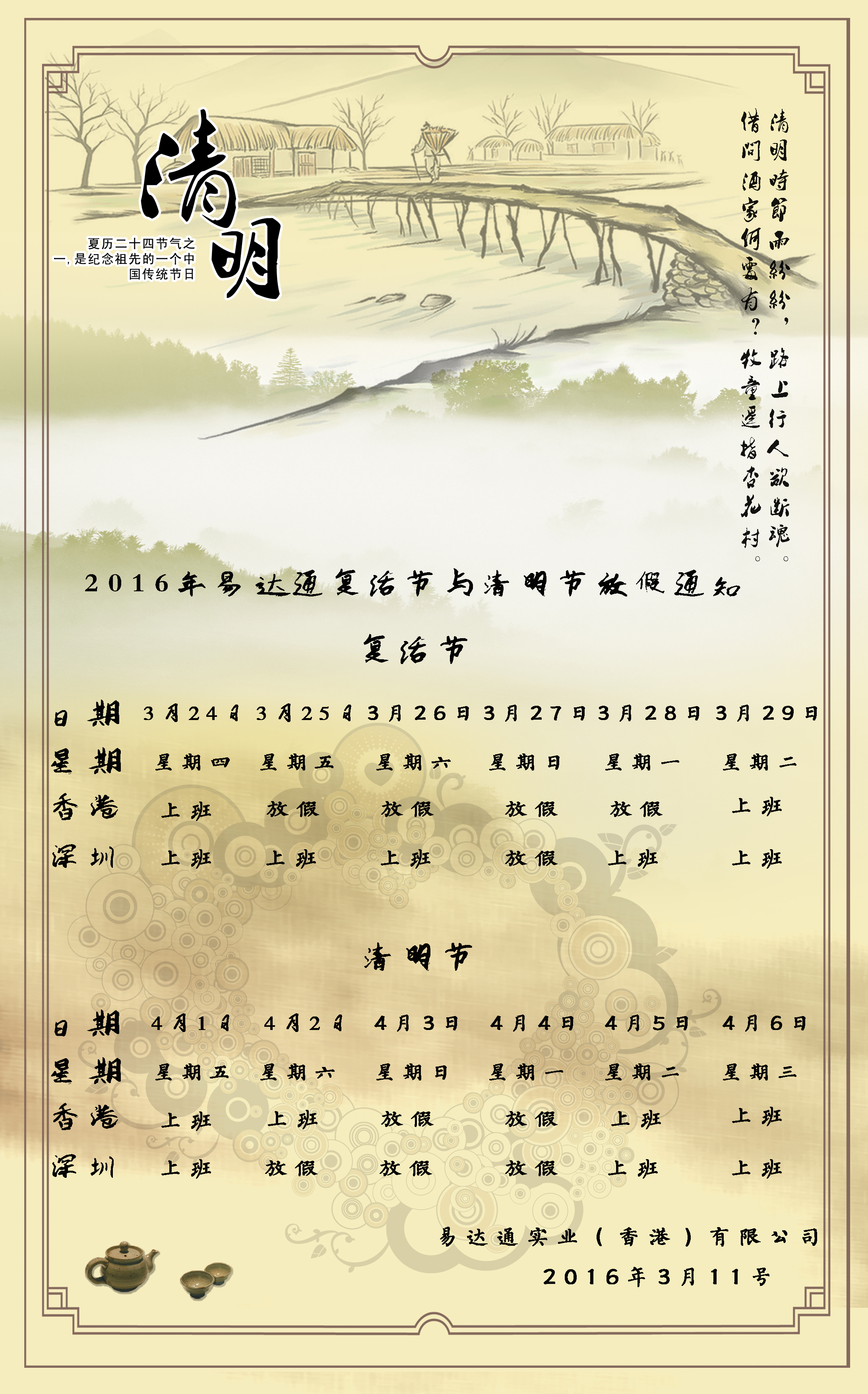 2016易達(dá)通復(fù)活節(jié)和清明節(jié)放假通知