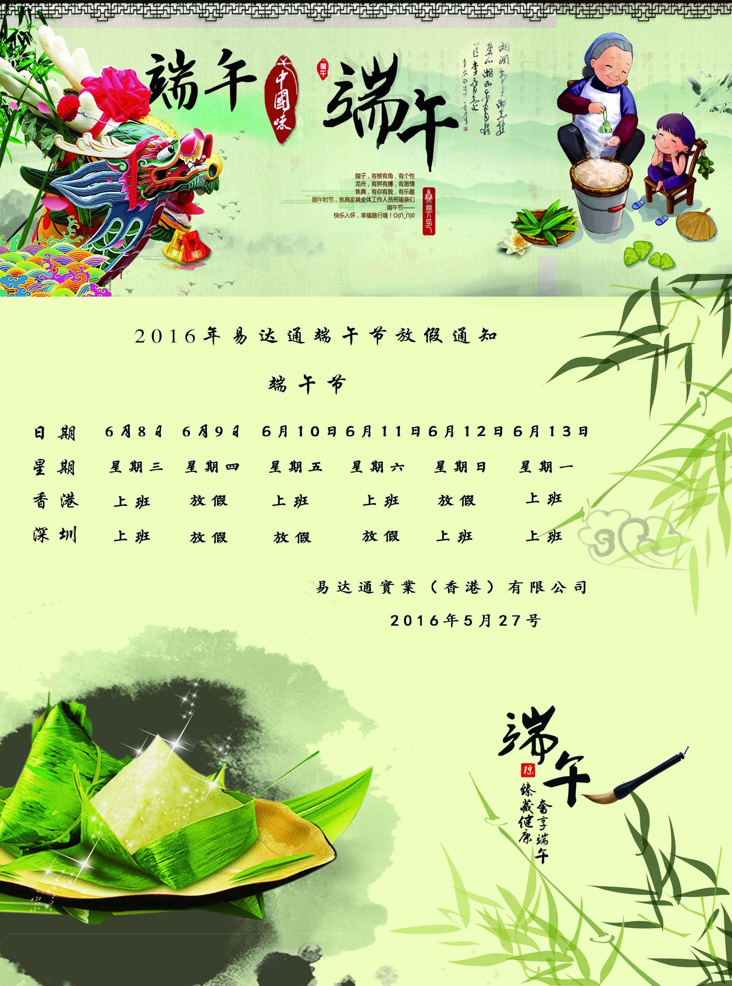 深圳市怡達(dá)通進(jìn)出口有限公司端午節(jié)放假通知