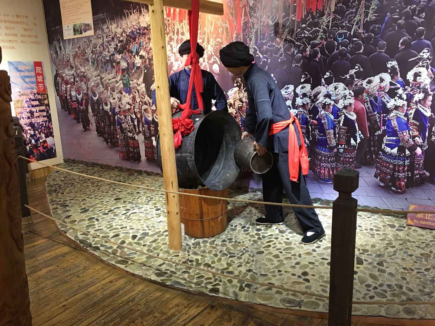 我們參觀“凱里非物質(zhì)文化遺產(chǎn)博物館”,近距離了解苗族國家級非物質(zhì)文化遺產(chǎn)傳承人制作的最齊全種類的蘆笙、價值連城的百鳥衣等刺繡、純銀手工銀飾、歷史文物等。