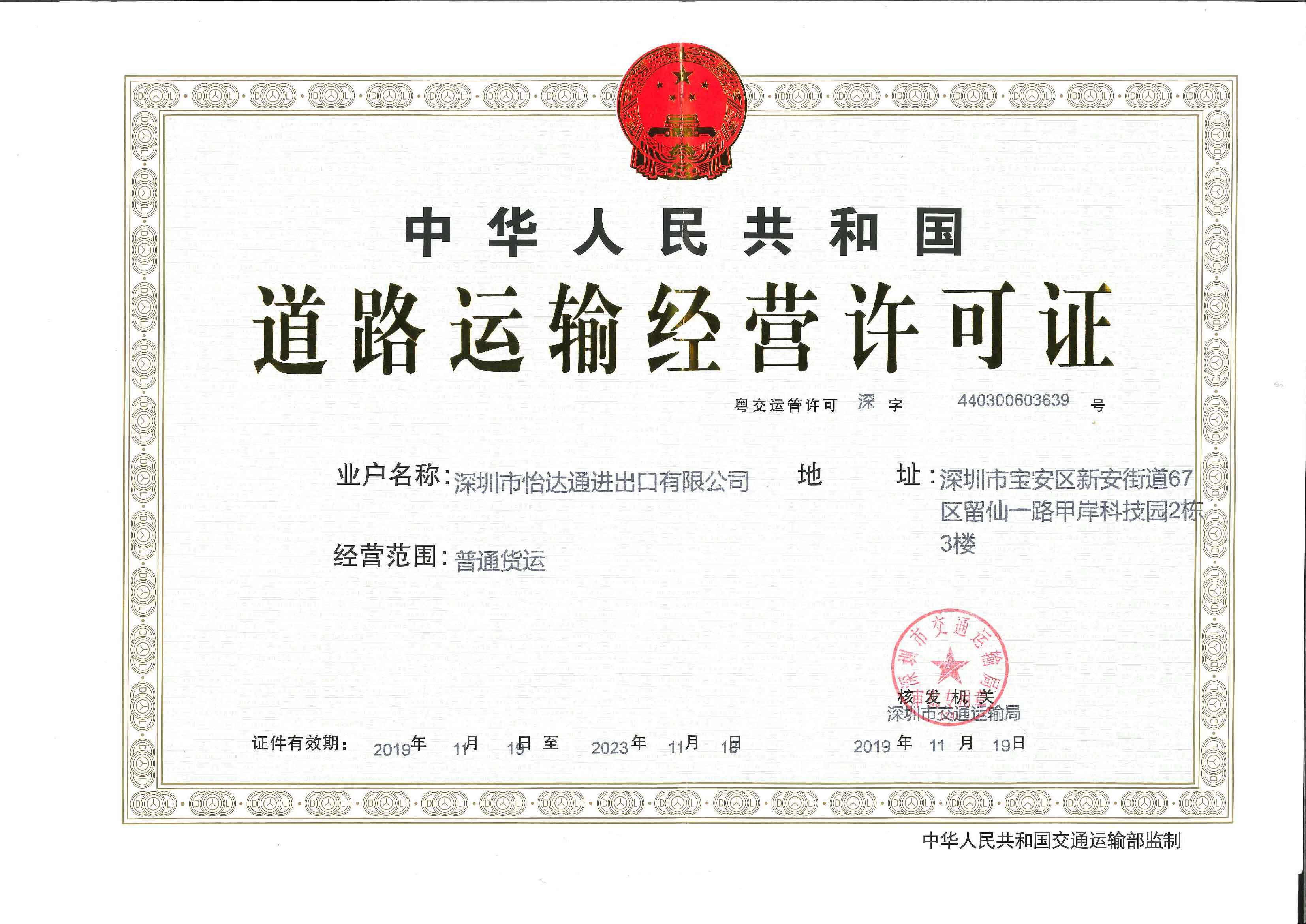 熱烈祝賀我公司獲得《中華人民共和國道路運(yùn)輸經(jīng)營許可證》