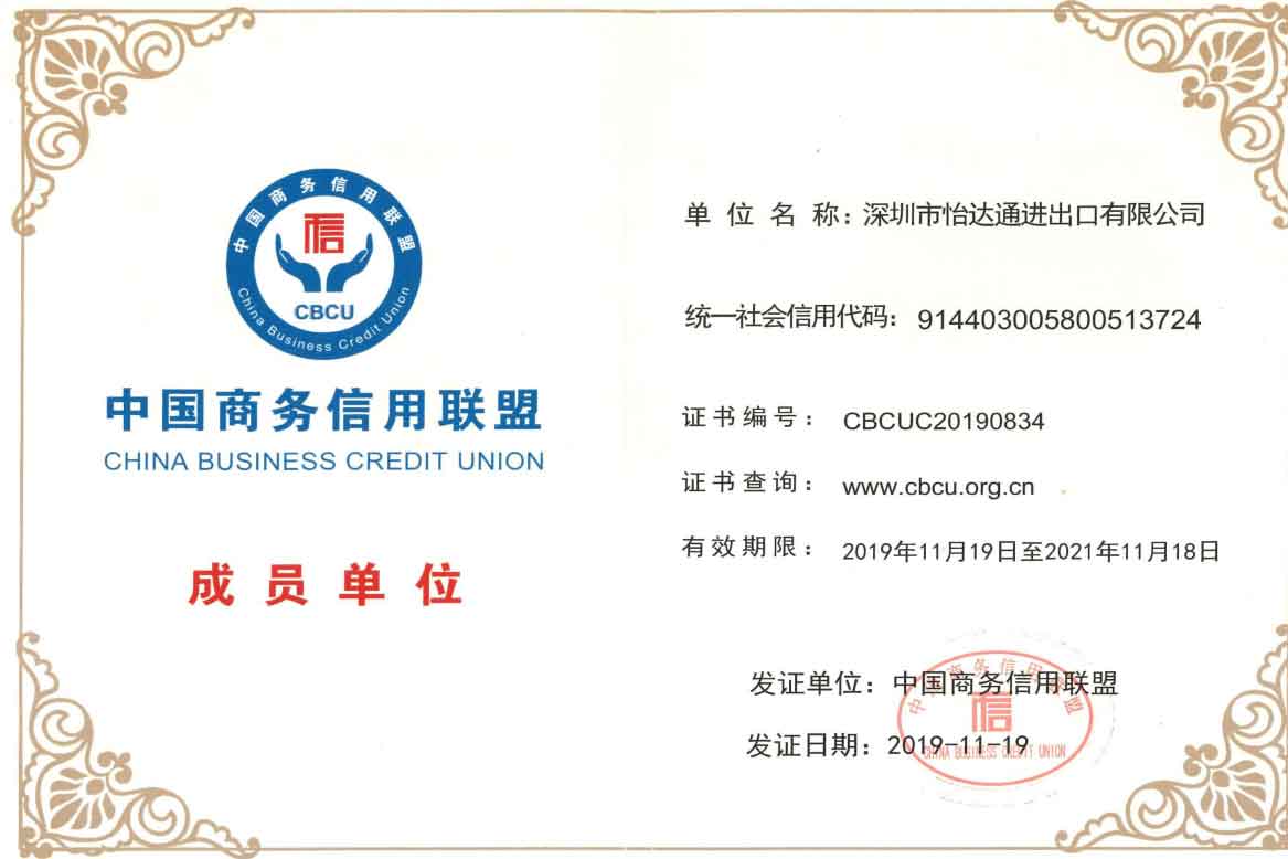 在這2019年下半年,我司就榮獲中國商務(wù)信用聯(lián)盟的成員單位,可謂是可喜可賀的!