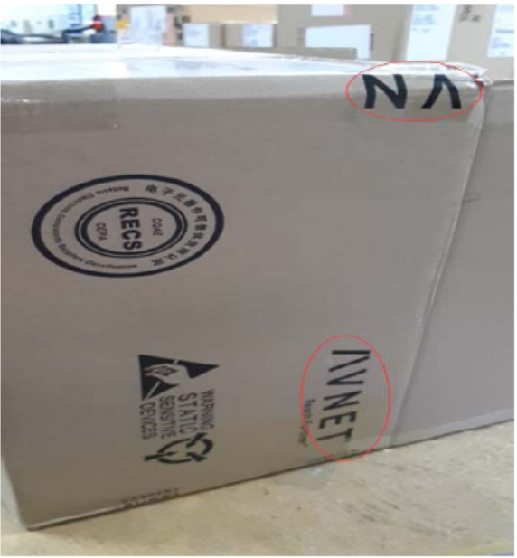 F 以下供應(yīng)商是安富利,對(duì)方的外箱及膠帶都有AVNET字樣,如要去掉供應(yīng)商資料,膠帶可以去,但外箱去不了,因外箱的名稱較大去不了,如真的要去建議換箱,只去掉膠帶沒有意義,一看外箱還是知道供應(yīng)商的(如下圖示)