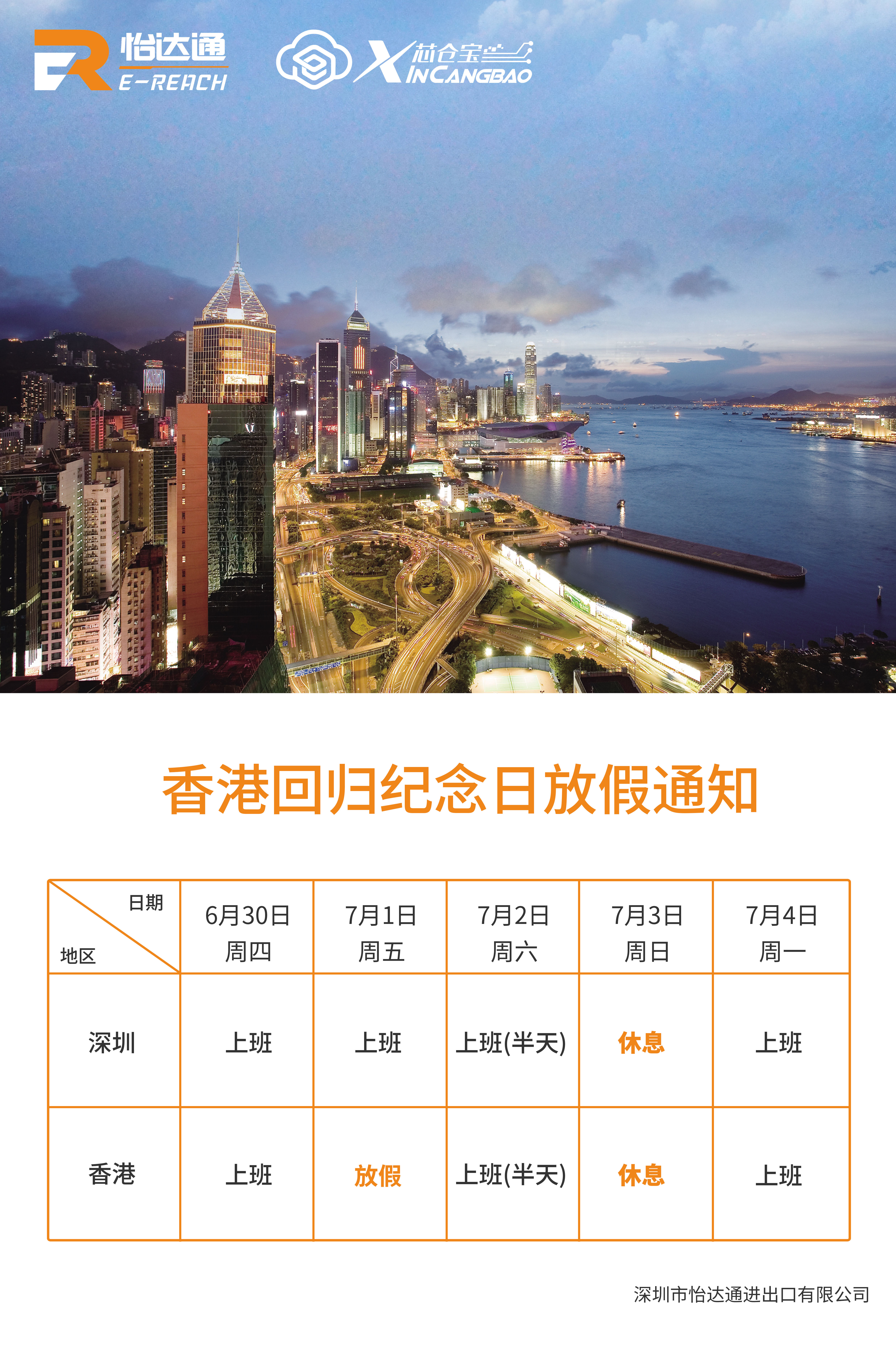 香港回歸紀念日放假通知