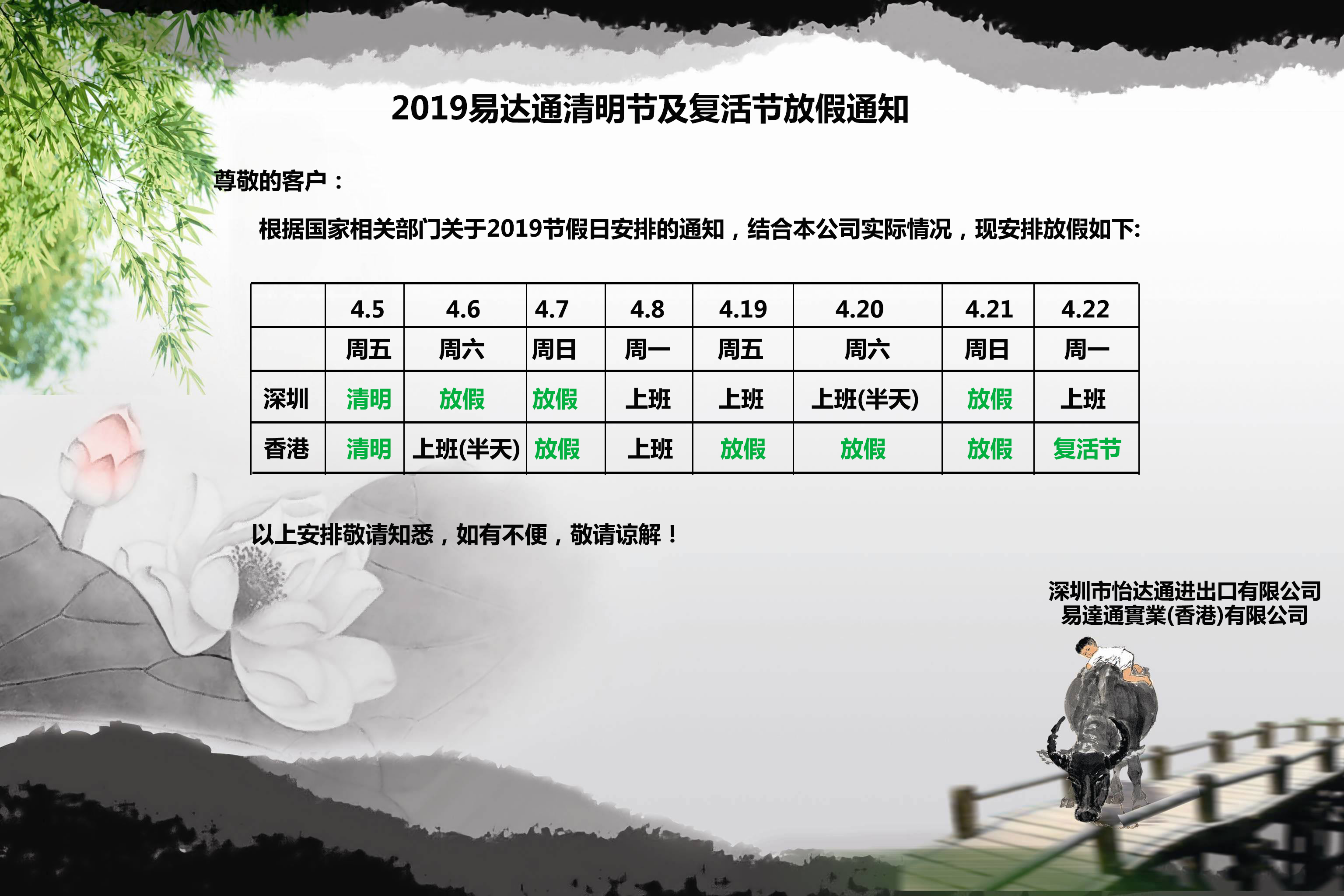 易達(dá)通2019清明節(jié)及復(fù)活節(jié)放假通知
