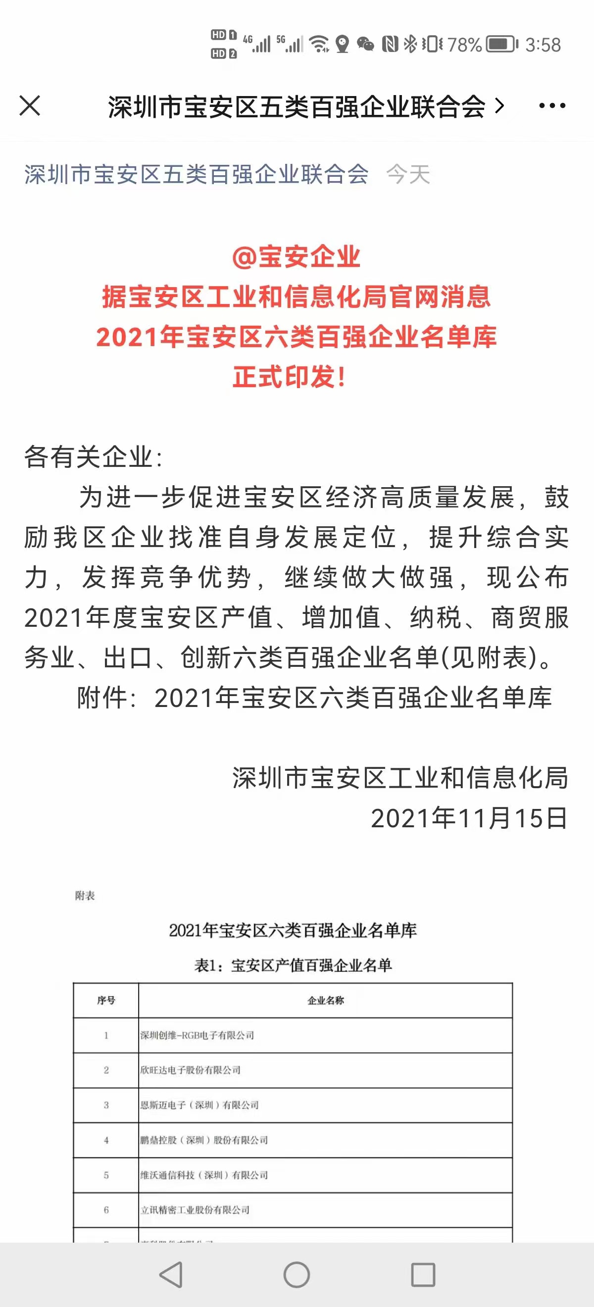 喜訊!我司榮獲寶安區(qū)商貿(mào)百強第七位